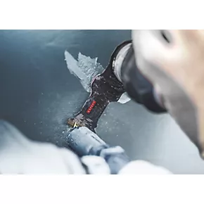 For cutting sheet metal and abrasive materials. Features Bosch carbide technology. Ultra-hard teeth with a curved-tec design enables chatter-free plunge cuts in sheet metal. Features Starlock mount for maximum power transfer and convenient blade change within 3 seconds.