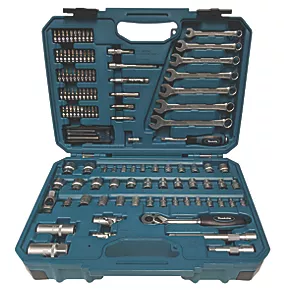 Compact and comprehensive 120-piece set, containing a variety of the most popular hand tools and accessories. Ideal for car mechanics, construction workers, handymen, DIY enthusiasts. Chrome vanadium steel construction. Supplied in blue plastic moulded case.