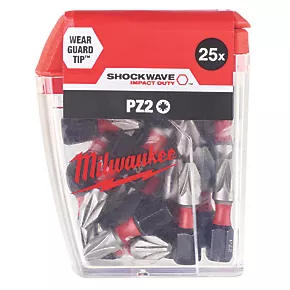 Milwaukee Shockwave 1/4″ Straight Shank PZ2 Screwdriver Bits 25 Pack