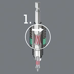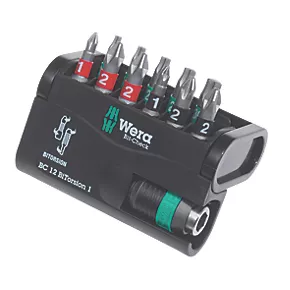 Pocket-sized Wera Bit-Check with Rapidaptor is designed for compact and organised tool storage. Utilising a unique combination of special materials, hardening and precision manufacture, BiTorsion bits are designed to prevent premature wear and dramatically extend service life. Torsion zone absorbs peak stress loads that normally destroy bits. BTZ extra-tough bits are suited to metal jointing, threaded fasteners and general use. The holder, with quick-release chuck, offers press-in auto-lock and rapid one-handed bit changes for insert and power bits. The holder spin sleeve allows steady screwdriving. Wera Bit-Checks feature a compact design to safely store bits and bit holders in a case that provides fast and easy tool selection.