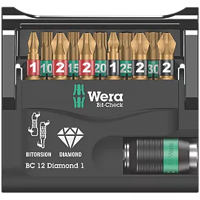 Wera Bit-Check 1/4″ Hex Shank Mixed BiTorsion Diamond-Coated Screwdriver Bit Set