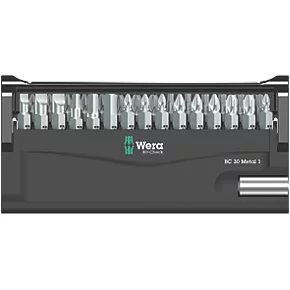 Pocket-sized, Wera Bit-Check General Purpose Set for drill/drivers is designed for compact and organised tool storage. Extra-Tough (Z) bits are suited to hard metal jointing, threaded fasteners and general use. Slim, stainless universal bit holder with ring retention for insert and power bits. Wera Bit-Checks feature a compact design to safely store bits in a case that provides fast and easy tool selection. So slim it can fit into your pocket. Sorted by drive and size, tools are easy to locate and return to proper position, making missing products easy to identify.