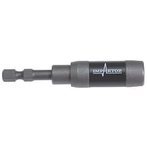 Impaktor bit holder with ¼” hex drive, retaining ring and magnet, designed to meet the extreme requirements when working with impact screwdrivers. TriTorsion system is designed to absorb impact forces and thereby protect the bit tip, greatly enhancing the service life of the bit. Retaining ring creates a secure fit, while the magnet secures positioning of the bit and the screw.